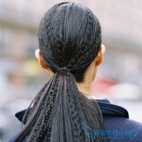 Put that old and dusty crimping iron to use, adding texture to small, sporadic sections of hair and immediately lending interest to an otherwise simple ponytail.可以使用尘封已久的卷发器,选择小部分散发加入纹理,马上就能给简单的马尾增添不少亮色。