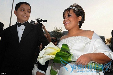 He had hoped to walk down the aisle, but despite his dramatic weight loss, he was transported to the ceremony on a flatbed truck and remained in his custom-made bed, according to The Associated Press.乌里韦希望自己可以步上红毯。不过根据美国联合通讯社的报道,虽然他已经减掉了很多体重,他还是被平板卡车运到婚礼现场,然后一直躺在为他特制的床上。