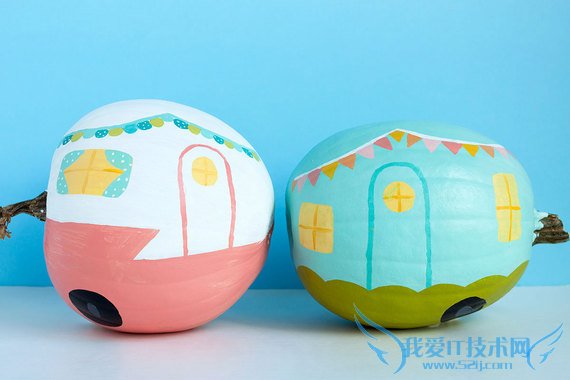 Have an awkward shaped pumpkin this year? Turn it into a vintage trailer by painting the outside!今年的南瓜奇形怪状?在南瓜的表面涂上颜料把南瓜做成一个古董推车!