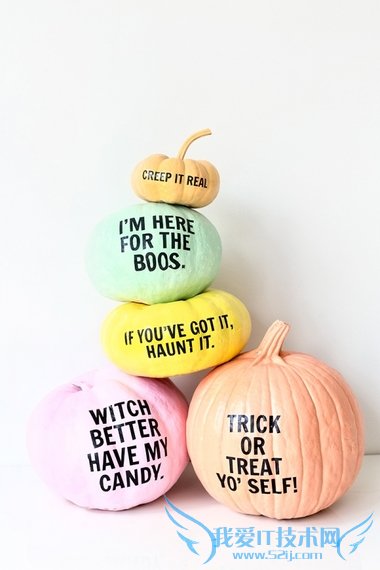 These pastel "pun-kins" are covered in puns and totally cute! For those of you who can't quite master the art of writing on pumpkins, this DIY project uses printables and tattoo paper to create these hilarious pumpkins!这些蜡笔画的"(南瓜的)双关语亲戚"上写满了双关语,真的是超级可爱!对于不能很好地掌握在南瓜上写字技巧的人来说,这一DIY作品用打印出来的纸张和纹身贴纸来做这些富有喜感的南瓜。