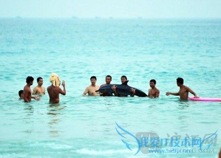 三亚游客强抱搁浅海豚合影 终因失血过多死亡