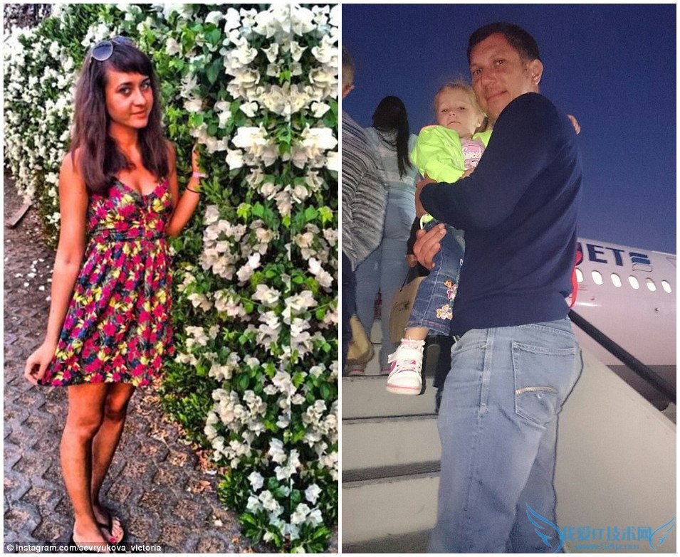 Haunting images: Viktoria Sevryukova (pictured, left, in an Instagram snap) also perished in the crash - as did Yury Shein and his young daughter Anastasia (pictured, right).难以释怀的照片:(左图,Instagram快照)Viktoria Sevryukova也死于这场空难——还有Yury Shein及其年轻的小女儿Anastasia(右图)。