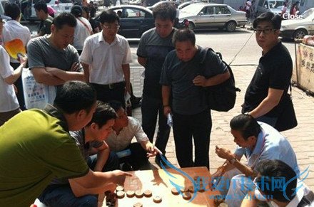 Middle to senior men; play chess in the public with people watching.中老年人;在一众围观下下棋。