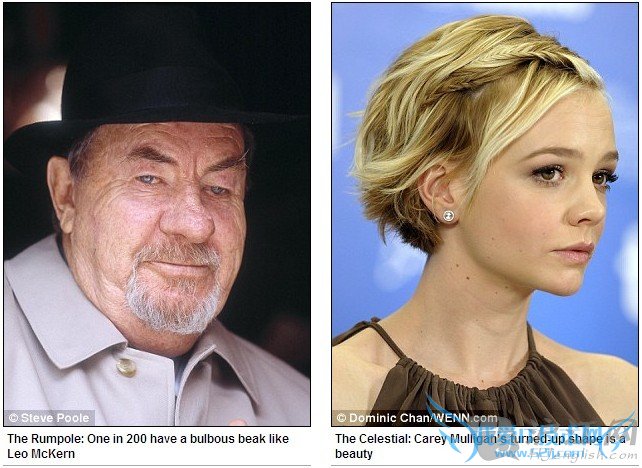 Some 13 per cent had celestial noses, with celebrity examples including actress Carey Mulligan (See Note 4). These, the professor believes, are most attractive along with the snub noses. Simon Withey, of the British Association of Aesthetic Plastic Surgeons (See Note 5), said the results would have been different had the survey been done in another part of the world.