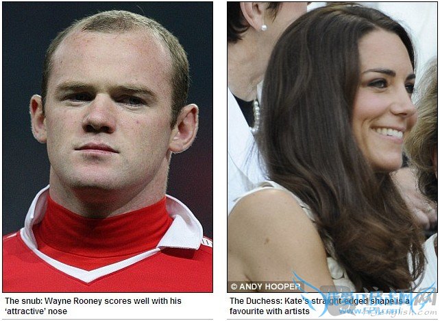 The Manchester United star (See Note 1), Wayne Rooney, has a nose that has been deemed among the most appealing by an academic who has completed what he claims is the first survey of its type to classify and record the different shapes of the human nose. Kate Middleton (See Note 2) can also claim an attractive nose. Her nose shape is one that is frequently painted by artists, suggesting that its shape must be aesthetically pleasing.