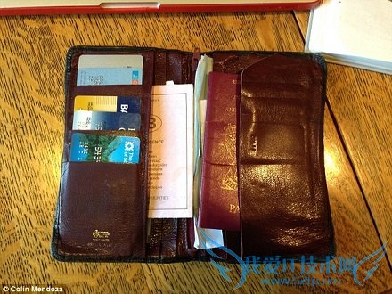 Colin said the wallet itself – a gift from his wife – is in good condition and showing few signs of additional wear and tear.科林说这个钱包是妻子是送给他的礼物,它保存的非常好,几乎没有磨损。