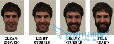 For their research, University of New South Wales professors Barnaby J. Dixson and Rob C. Brooks presented photos of 10 smiling men to 177 heterosexual men and 351 women, according to MedicalXpress. Each man in the photos was shown in four ways -- clean-shaven, with five days of beard growth (light stubble), 10 days of growth (heavy stubble), and with a full beard.据MedicalXpress网站报道,新南威尔士大学巴纳比·迪克森教授和罗伯·布鲁克斯教授进行了这项研究。他们让177名异性恋男性和351名女性观看10名微笑男子的照片,这10个人各有四张照片,分别是:刚刚刮好胡子的、五天没刮胡子的(只有一点胡子茬)、十天没刮胡子的(重胡茬)和满脸大胡子的。