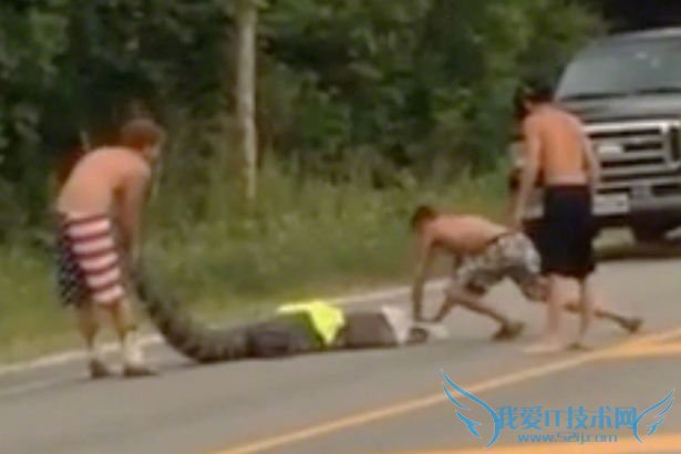 Gator aid: Brave drivers shift an alligator blocking a road in Louisiana, US