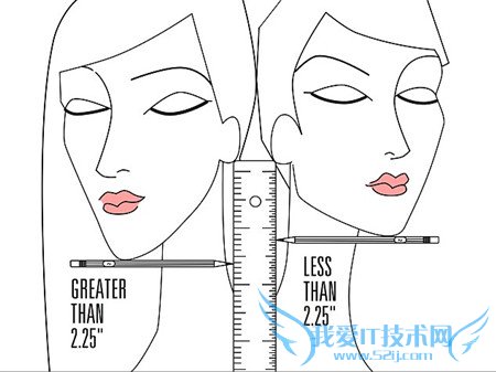 If you're thinking about the right hair length for your face, you don't need to consult with a stylist, do a lot of research, or pull back your hair, squint your eyes and try to imagine your face with a short hair style. All you need is a ruler and a pencil, and The 2.25-inch (5.5cm) Rule.如果你正在考虑自己的脸型适合什么长度的头发,现在你不需要再咨询发型师,做很多研究,或者将自己的头发绾到后面,侧视自己的脸来想像自己是不是适合留短发了。你只需要一把尺子,一只铅笔和2.25英寸(5.5厘米)法则来判断就可以了。