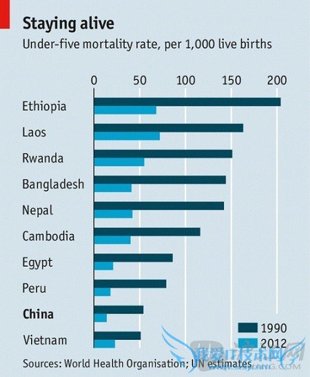 China’s advances have not gone unnoticed. Last month a group of four international bodies, including the World Health Organisation (WHO) and the World Bank, said China was one of ten countries to have made exceptional progress in reducing infant and maternal mortality (see chart). 中国的进步并非无人发觉。上个月,包括世界卫生组织和世界银行在内的四大国际组织称,世界有十个国家在降低婴儿死亡率和产妇死亡率方面成就卓越,中国即其中之一。