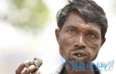 This Indian villager is addicted to eating bricks, gravel and mud, stomaching at least three kilos of his surroundings every day. Pakkirappa Hunagundi, 30, first developed a taste for the seemingly inedible objects at the age of ten.印度村民Pakkirappa Hunagundi对吃砖头、碎石和泥土上瘾,每天都要进食周围3公斤砖土。Hunagundi今年30岁,他在10岁的时候发现自己喜欢吃那些砖头这种看上去无法食用的东西。