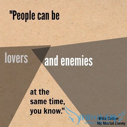 People can be lovers and enemies at the same time, you know.你知道吗,人可以同时是情人和敌人。
