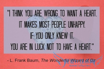 I think you are wrong to want a heart. It makes most people unhappy. If you only knew it. You are in luck not to have a heart.我认为你想拥有一颗心的想法是错误的。心,让大部分人都不开心,如果你知道这一点,就会庆幸自己没有心是多么的幸运。