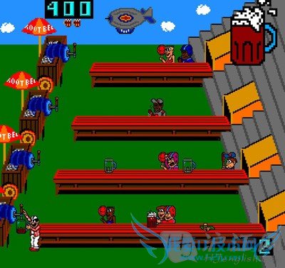 Tapper - the idea of multi-tasking five different lanes of your lawn is similar to the gameplay of this old arcade game.