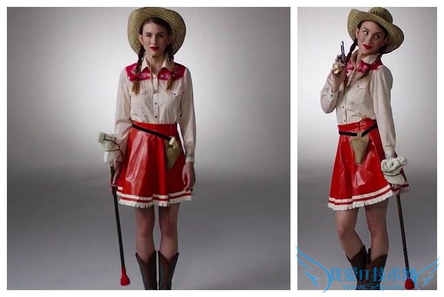 While the '50s took on a Wild Wild West approach. Pow! Pow!然而50年代的服装呈现出遥远遥远的西部风格。砰!砰!