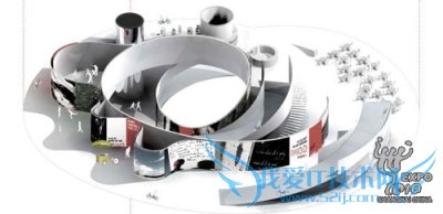丹麦馆是采用双螺旋结构造型,其人行道和车行道,从地面盘旋两次到达12米的高度,又盘旋而下回到地面。展馆采用钢筋结构,并漆成白色,以此来展现丹麦的航海传统文化,还可以帮展馆降温。