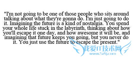 You spend your whole life stuck in the labyrinth, thinking about how you'll escape it one day, and how awesome it will be, and imagining that future keeps you going, but you never do it.ÄãÒ»Éú°Ñ×Ô¼ºÀ§ÔÚÏÖʵµÄÃÔ¹¬ÀÏëÏó×ÅÖÕÓÐÒ»ÌìÄ㽫ÌÓÍÑ¡¢ÌÓÍÑÖ®ºóÓжàÃÀÃî¡¡¶ÔδÀ´µÄÏëÏóÖ§³Å×ÅÄ㣬µ«ÄãÈ´´ÓÀ´Ã»ÓÐÕæÕýʵÏÖ¹ý¡£