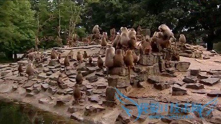 The bizarre behaviour of a troop of 'hysterical' baboons at a Dutch zoo has been blamed on everything from an earthquake to a UFO.荷兰动物园里的一群狒狒“行为诡异”,造成这一现象的原因还没确定,有人说是地震引起的,还有人说是不明飞行物来袭。