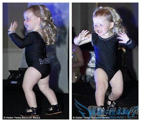 'She does wear wigs and crowns and fancy dresses but I don't give her spray tans or cake her in makeup - I'll wait until she's about five for that.'“她确实带着假发和皇冠,穿着美美的裙子,但是我不会给她用喷雾晒黑剂或者给她涂上满脸的化妆品——我会等到她五岁的时候再给她用这些。”