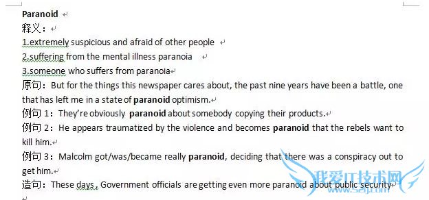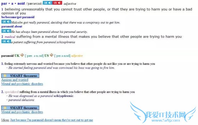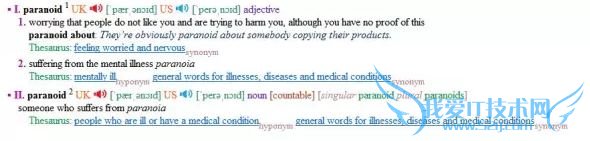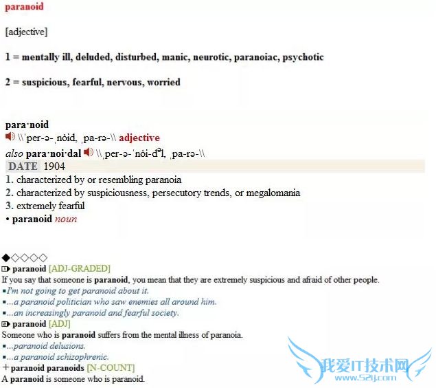 比如对于文中的paranoid,我们查询之后可以得到这些结果: