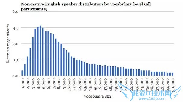 不是六七千,不是八九千,也不是一两万,而是:越大越好。是的,两三万算凑合,四五万也不嫌多。著名的词汇量测试网站www.testyourvocab.com 对此做了一个统计:
