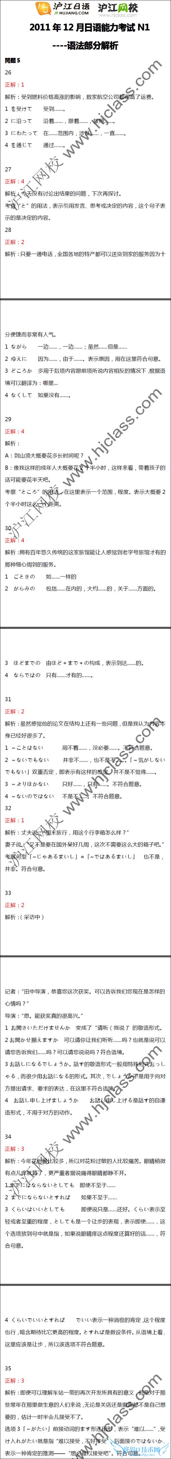 2011年12月日语能力考一级N1语法真题解析(沪江网校)