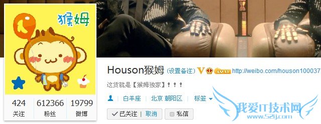 微博主页:http://weibo.com/houson100037