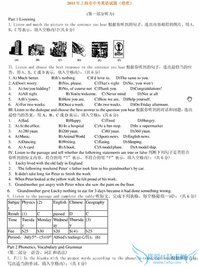 本文所分享的知识点是【2011年上海市中考英语真题及答案(听力音频)最新公布】,欢迎您喜欢52ij所分享的外语学习知识,下面是详细的讲解。
