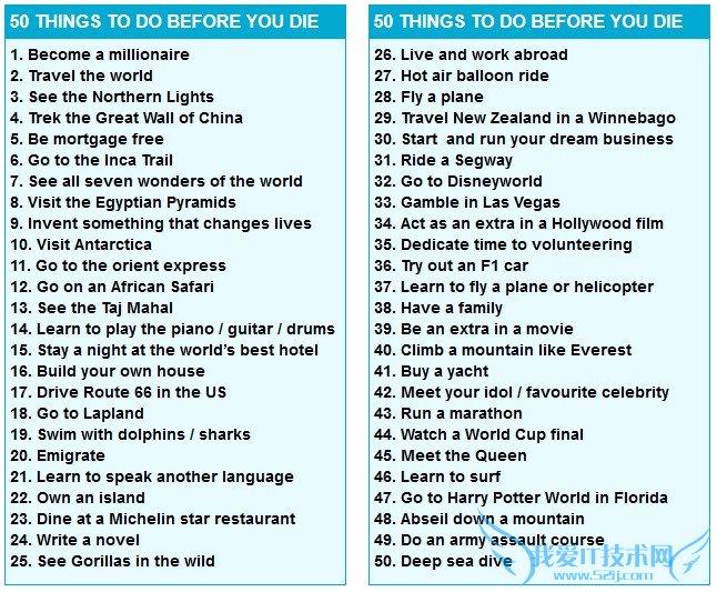 欢迎您访问52ij英汉互译网,今天小编为你分享的英语知识是:【英国人死前最想做的50件事:你最想做什么?】,下面是详细的分享!