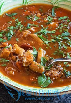 Stir together the garlic, ginger, tamari, vinegar, and red-pepper flakes. Add the steak, stirring to coat, and set aside to marinate for 15 mins. Heat 1 tbsp of grapeseed oil in the pan. Lift the beef out of the marinade and add to the pan. Stir-fry for 1 minute, just until the beef is no longer pink on the outside.把大蒜,姜,酱油,米错和辣椒粉搅拌在一起。加入牛排放在一旁浸在酱汁中15分钟。在平底锅里热1汤匙葡萄籽油。把牛排从酱汁里捞出来放到平底锅里。炒1分钟,直到牛排的外面不再是粉色的。 Scrape the contents of the pan into a large bowl. Add 1 tbsp of grapeseed oil to the pan, with the onion. Stir-fry for 1 minute. Add the bell pepper, stir-fry for a minute more, then transfer the onion and bell pepper to the bowl. Add the remaining grapeseed oil to the pan, then the broccoli and stir-fry for 1 minute. Add the stock, cover tightly and steam for 1 minute.把粘在锅上的刮下来到碗里。锅内加入1汤匙的葡萄籽油,放入洋葱。炒1分钟,加入灯笼椒。再多炒1分钟,把洋葱和灯笼椒盛到碗里。锅里加入剩下的油,然后加入西兰花炒1分钟。加入高汤,加盖闷1分钟。 Add the beef and veggies back to the pan, with any juices, the reserved marinade and sesame seeds, and stir until bubbling and heated through, about 5-10 minutes. Serve with the quinoa.把牛肉和蔬菜再丢回锅里,加入果汁,加入酱汁和芝麻籽,搅拌至冒泡热透5到10分钟。拌上藜麦吃。 |
