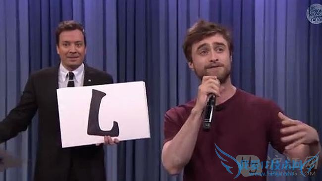 Radcliffe went on the show revealing he’s always had an “obsession” with memorising rap.The audience giggles when he notes his appreciation for rap, including rhythmic gymnasts like Eminem.Fallon then presents Radcliffe with a microphone and asks him to prove his rapping ability.雷德克里夫在节目中透露,他曾经总是会对记忆说唱歌词“痴迷”。当他说明他对说唱、包括对像阿姆这样的节奏体操运动员们的赞赏时,观众们咯咯地笑了起来。然后法伦给了雷德克里夫一个麦克风,让他来证明自己的说唱技能。