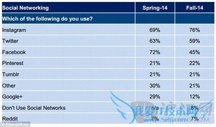Instagram has become even more popular, with 76 percent of teens currently saying they use it - up 7 percent since last spring. Instagram更为流行,如今有76%的青少年可以说都在使用,比去年春季已上升了7个百分点。