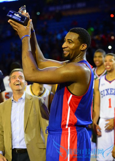 2014年NBA全明星赛拉开战幕,在今天的新秀挑战赛中,底特律活塞中锋德拉蒙德获得了新秀赛MVP,但是在颁奖仪式上发生了一点点的小意外。颁奖人Will Perdue在将奖杯给到德拉蒙德手上的过程中时,不慎将奖杯掉到了地上,奖杯也因此损坏分成两半。