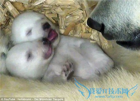 They were the only polar bear cubs to be born in captivity in Europe last year and, incredibly, their mother positioned herself in the direct view of CCTV cameras set up to record the moment.去年在欧洲出生的这对宝宝是唯一的、在人工饲养的环境下出生的北极熊宝宝。令人惊讶的是,熊妈妈产子时正对着监控摄像机,使得熊宝宝出生这一幕被记录了下来。