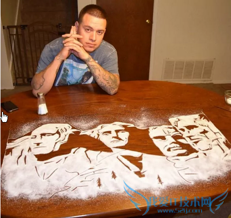 A true artist doesn’t really need expensive tools and materials to produce something beautiful, and San Antonio artist Rob Ferrel is the perfect example. For months, he has been treating his Instagram followers with highly realist portraits that he creates using nothing but salt, a few brushes, and a piece of cardstock.一个真正艺术家创作美的东西是不需要昂贵的工具和原料的,圣安东尼奥市的艺术家罗伯·费雷尔就是典型的例子。数月以来,他就一直用食盐,几把刷子和一块卡纸创作高度现实主义的肖像画供他在Instagram上的粉丝观赏。