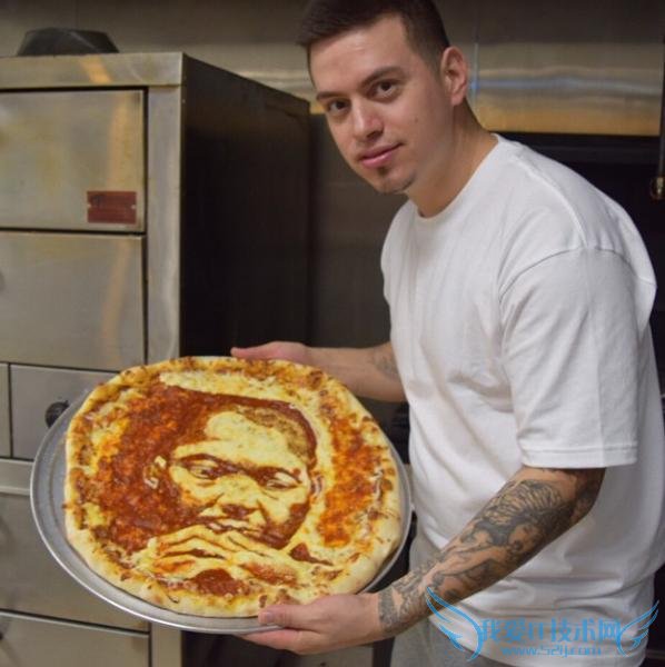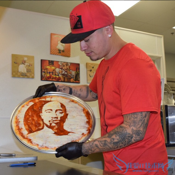 这位小哥还在披萨上作画呢!不过,看着长着一张张明星大腕的脸的披萨,你下得了口么?