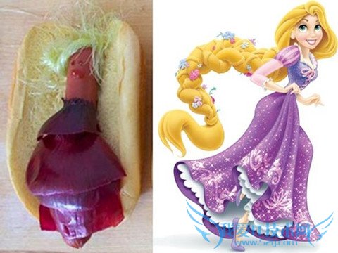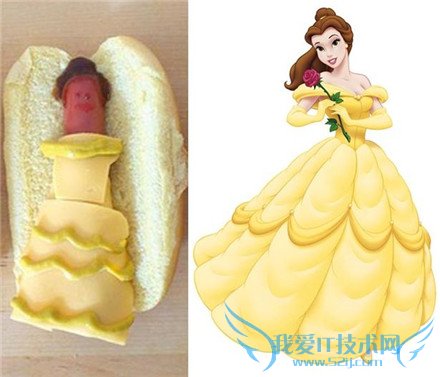 A new project has reimagined the feminine forms as hot dogs, and it's gripped the imagination of the internet. The pictures show the great animated heroes with added cheese, mustard and red onion to create their hair, skirts and style.有一新的课题项目重新构想,把女性角色塑造成热狗,攫取了网民的注意力。如图所示的动画女主角,形象美好,加以芝士、芥末和红洋葱,塑造发型和裙装、打造流行风尚。