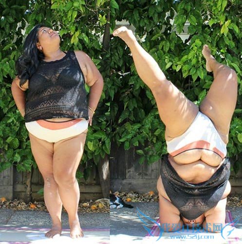 For the last three years the plus-sized San Francisco Bay-area woman has candidly uploaded impressive photos and videos of herself practicing a range of stunning yoga poses — from standing on her head to balancing on two hands — while attracting more than 57,000 fans on Instagram alone.这个体型庞大的女子住在旧金山湾区,在过去3年里,她大方地把自己练瑜伽的照片和视频发到网上,给人留下了深刻的印象。从用头倒立到用双手撑起自己,她做过一系列高难度的瑜伽动作,仅仅在Instagram就吸引了超过5万7千名粉丝。