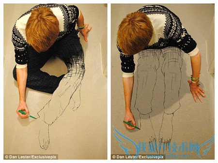 After he has finished digitally adapting the picture, half of the subjects' bodies are made to look as if they have been drawn on a blank canvas.ÔÚËûÓÃÊý×Ö¼¼Êõ¶ÔÕÕÆ¬½øÐд¦Àíºó£¬Ä£ÌصÄÒ»°ëÉí²Ä¿´ÆðÀ´¾ÍÏñÊÇ»¨ÔÚ¿Õ°×»²¼Éϵġ£