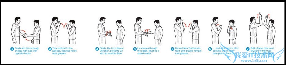 4. Lin whizzes through the pages. Must be a speed reader.林书豪用右手做出假装翻阅《圣经》的动作,他翻阅的速度非常快,肯定是一目十行啊。