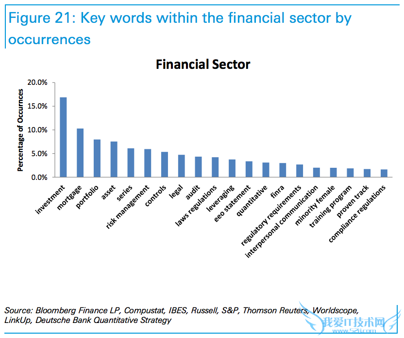 In addition to that statistical research, the researchers performed a text analysis on listings in different sectors. They found various key words and phrases that were very common in listings in the technology, financial, and energy sectors.此外,他们还在这次统计研究中,对不同行业招聘广告的文字内容进行分析,找出了科技、金融、能源行业广告中最常见的用语。