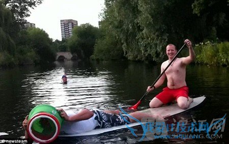 Richard Ford's cherished platinum band slipped off his finger while he was paddleboarding with a group of friends along the River Tame, in Tamworth, Staffordshire, on July 14. 7月14号,理查德·福德和一群朋友在英国斯塔福德郡塔姆沃斯的特姆河上冲浪,心爱的白金戒指不慎从手指滑落。