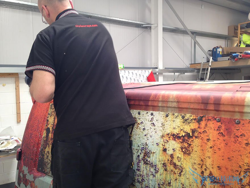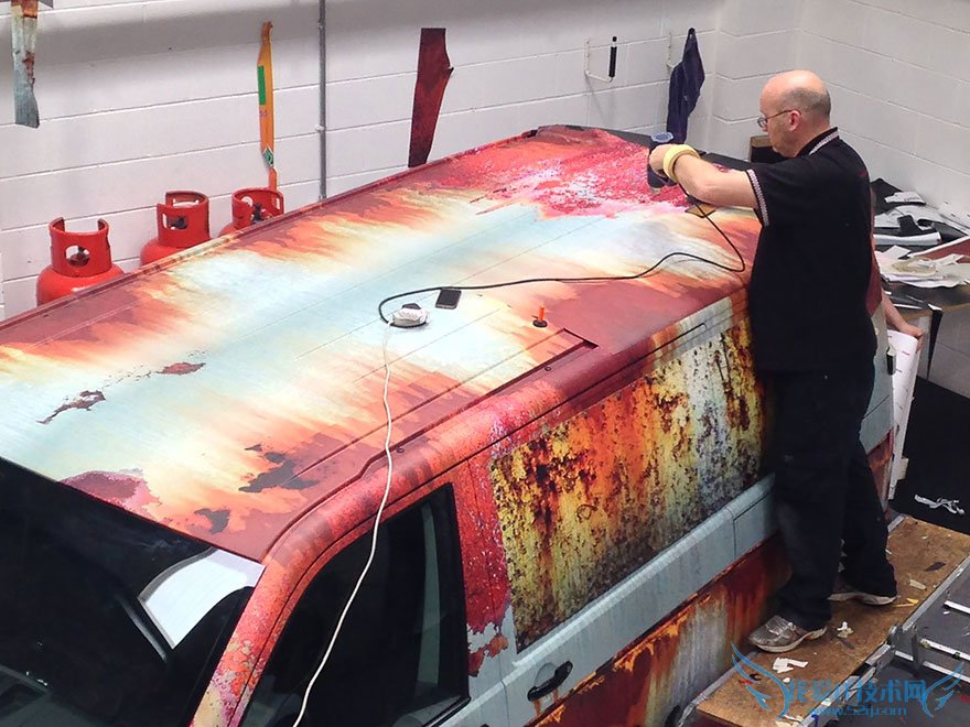 “It only took 3 days for the police to pull him over to ask what was going on with all the rust,” Clyde’s Wraps write on their website. “Please note that there is nothing illegal about going to town with graphics on your vehicle but it may confuse others!”“车子上路后仅仅3天时间,警察就在路上把车拦了下来,询问这车子为何锈迹斑斑。” Clyde’s Wraps的官网上这样写道。“请注意,在车身上放一些图案不违法,但是的确会对他人形成一定的困扰。”