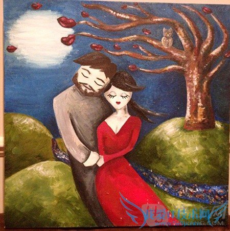 'I started painting some pictures to decorate the walls and I had a couple of ideas I wanted to incorporate. I wanted to create an image of a couple at nighttime but I didn't really have any set ideas, I just did what felt natural.“我就开始画画装饰墙壁,我有很多想法想要融合在一起,我想创作一份恋人在夜间的图画,但我没有什么固定的想法,只是想随性而作。”