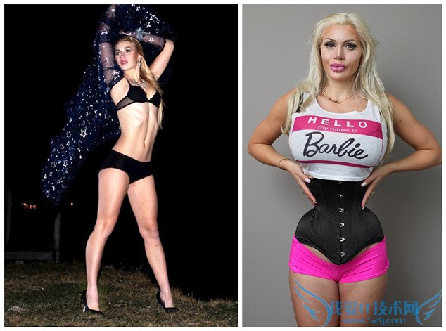 Pixee Fox, 25, is very much a living, breathing woman and she's spent more than $119,200 on surgical procedures to achieve her look. Most shockingly, she has had six of her lower ribs removed in a bid to shrink her waist to a record-breaking 14 inches.皮克茜·福克斯是活生生的血肉之躯,为了获此相貌,已经在外科手术上花了超过11万9200美元。令人震惊的是,她抽走了6根下肋骨,努力把腰围缩减到14英寸,破了纪录。