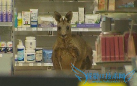 A kangaroo hopped into Melbourne airport in Australia and has been captured by authorities, after entering a pharmacy on the terminal's second level.一只袋鼠蹦进了澳大利亚墨尔本机场,窜进了机场航站楼二楼的一家药店里,后来在那里被当局抓获。