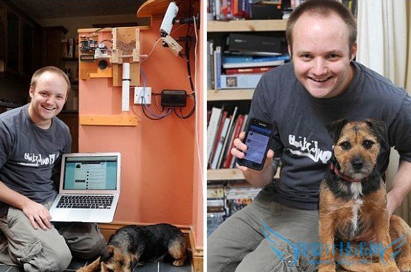 IT consultant Nat spends a lot of time working away from home and isn¡¯t always able to feed Border Terrier Toby by hand. But using his new invention he is able to send his dog a treat from anywhere in the world.ÄÉÌØÊǼÆËã»ú¹ËÎÊ£¬Ã¿ÌìÓд󲿷Öʱ¼ä¶¼ÒªÀë¼ÒÈ¥Éϰ࣬û·¨Ç××Ô¸øÍбÈιʳ¡£²»¹ýÏÖÔÚÓÐÁËÕâ¸öз¢Ã÷£¬²»¹ÜËûÔÚÊÀ½çÉÏÈκνÇÂä¶¼Äܸø°®È®Î¹Ê³ÁË¡£