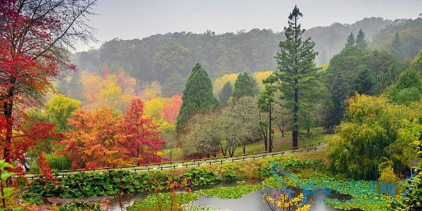 The range of trees and lakes in Adelaide Hills, part of the Mount Lofty Ranges in South Australia, are a colourful mix during autumn.秋季时节,在阿德莱德山,南澳州的部分高山岭地区,一排排秋木与湖区色彩层叠,交相辉映。