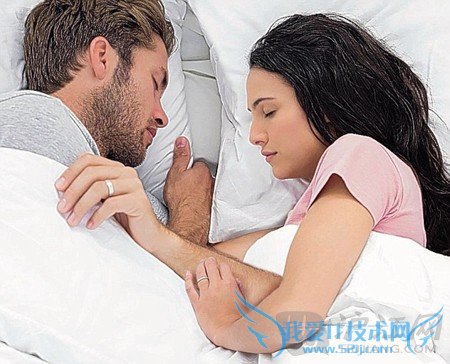 The happiest couples: Partners who sleep face to face while touching were found to be 100% satisfied in their relationships.最幸福的情侣:面对面相拥而眠、有一定身体接触的情侣,对二人关系百分百满意。