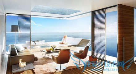 The sea level will feature an open-plan living area, kitchen and dining area, while the deck features a mini-bar and glass-bottom Jacuzzi.海面上那层是一个开放式的区域,有厨房和餐饮区,而甲板上那层有一间迷你酒吧和一个玻璃底按摩浴缸。